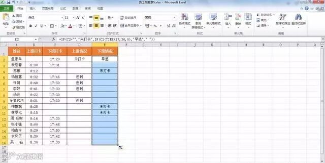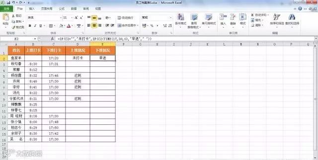 tip:如果C2单元格为空,就会返回“未打卡”;如果小于17:30则会返回“早退”;如果都不满足的话则不显示。
