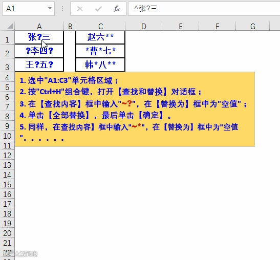 3. 快速查找替换通配符