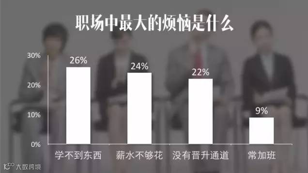 ▷ 网上常提及的段子是:70后努力加班、80后拒绝加班、90后拒绝上班——但在多选的情况下,也只有9%的人表示加班是职场的烦恼。但此次的报告数据显示,90后是最爱加班的群体,仅有9%的90后抗拒加班,超过半数的90后愿意为事业牺牲生活。其实,90后不是不愿意加班,如果他们觉得这件事比当下的生活重要,他们是甘愿为自己喜欢的事业拼赌注的。