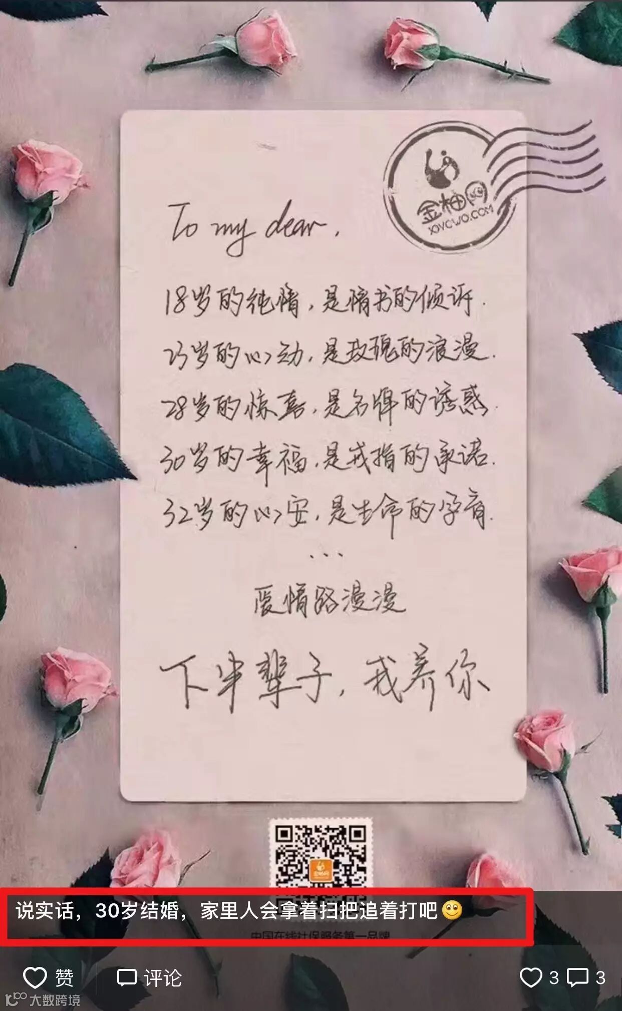 (小编猜测是单身狗同类)留言说