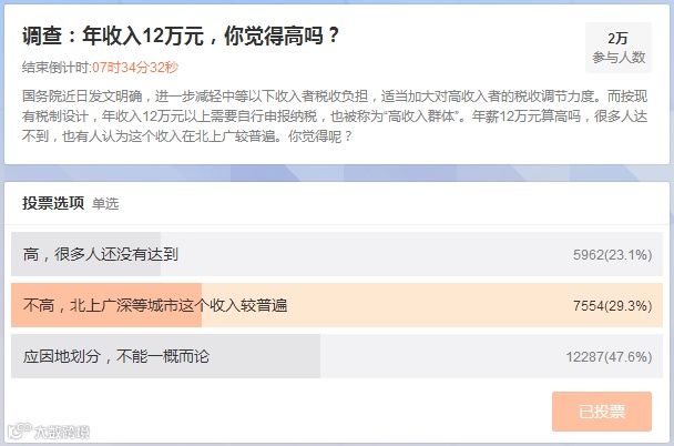 看来大部分人的看法都是差不多的:在一线城市,12万元的年薪收入,并未达到真正的高收入人群的标准,而这个数字在其他三四线及更小一点的城市确实不算少。
