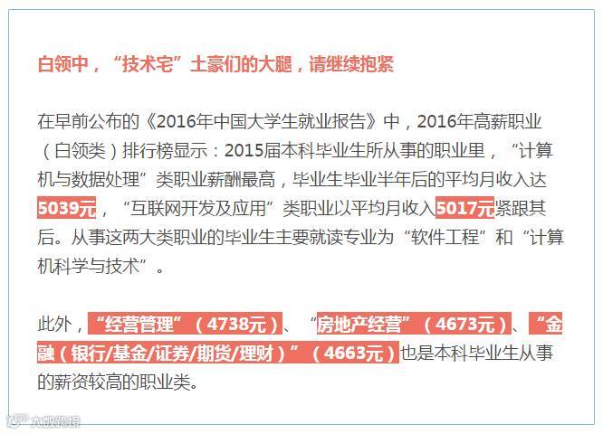 小编曾在 「2016年这些行业的薪水居然这么高?」 一文 中跟大家分享过蓝领和白领目前月薪最高的几个职业~ 2016年,各行各业中薪资最高的工作有哪些呢?看了这两图你便知到了——