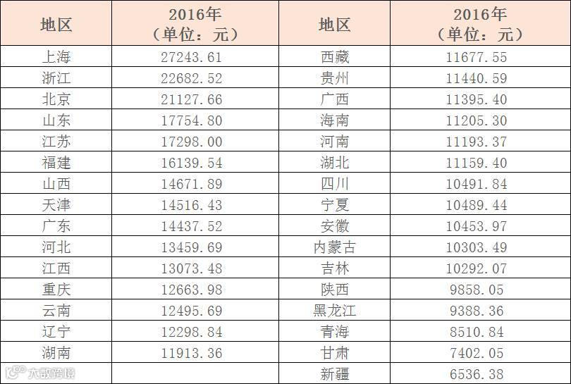 ▵2016年我国城镇居民潜在工资理财规模排行榜。
