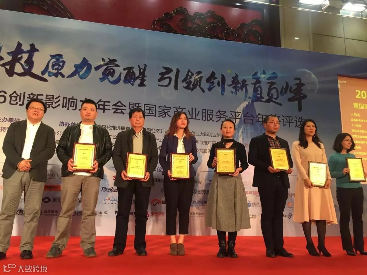 金柚网公关品牌经理刘敬妹(右四)替金柚网CEO郭伟上台领奖