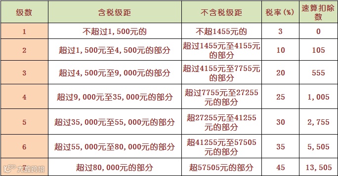 附:含税级距适用于由纳税人负担税款的工资、薪金所得;不含税级距适用于由他人(单位)代付税款的工资、薪金所得。