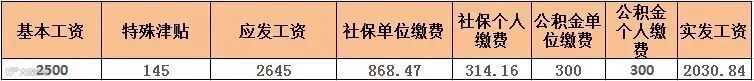 但因七月涉及1-6月补差,所以小刘实际收到的工资为(2500+145)-(2585.95*10%+4)-(2500*12%)-(2585.95-2500)*10%*6=2030.84元