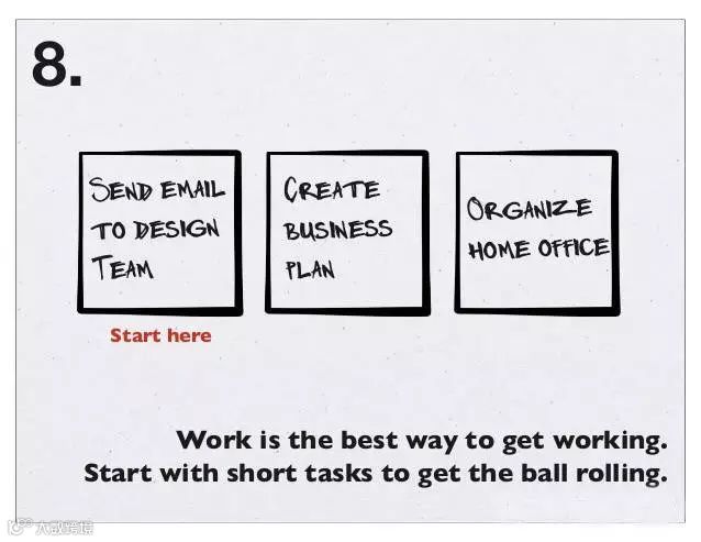 8、进入工作状态的最佳方式就是工作,从小任务开始做起,让工作运转起来。