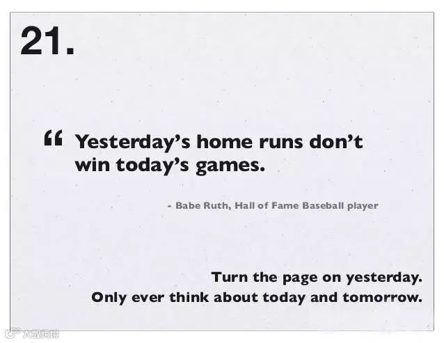 21、把昨天翻过去,只考虑今天和明天昨天的全垒打赢不了今天的比赛。—好汉不提当年勇。