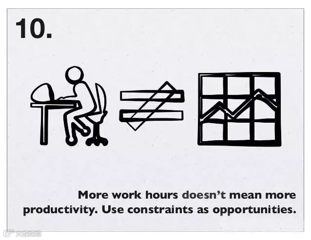 9、迭代工作,期待完美收工会令人窒息:“做完事情,要胜于完美收工” Facebook 办公室墙壁上贴的箴言。动手做,胜过任何完美的想象。