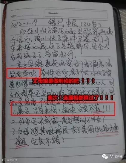 但这位丈母娘还是无情地(relentlessly)挑出了不少缺点(shortcoming)。她在相亲日记中写到“房子在xx小区的两室,专门看了厨房,冰箱有异味”;“属马,这点和囡囡相冲,这点不满。”