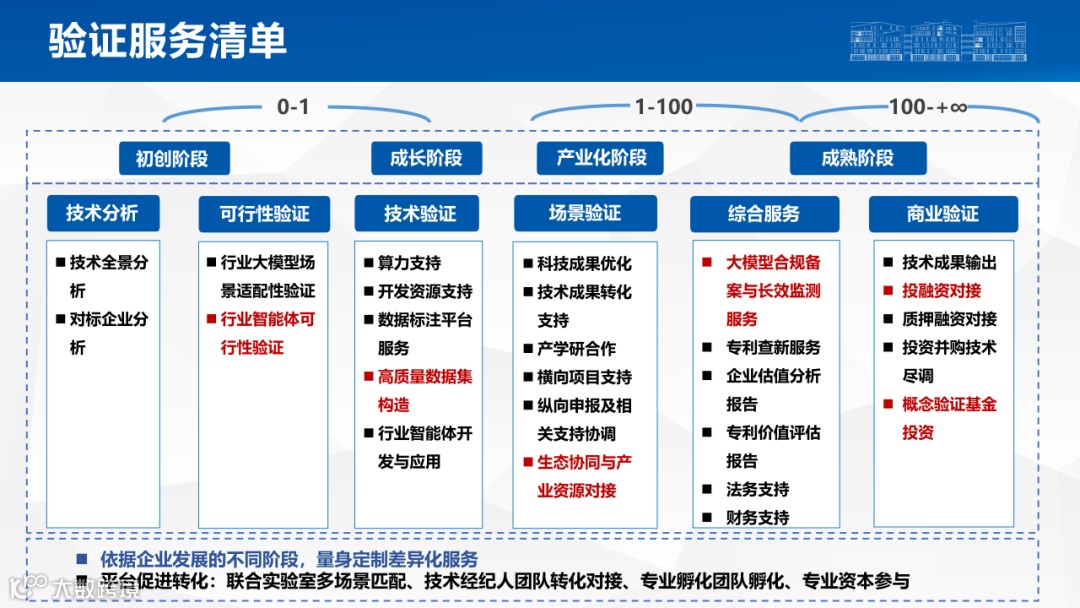 成长阶段企业:破解“场景适配”的“加速器”聚焦行业大模型场景适配性验证、行业智能体可行性验证,同步提供高质量数据集构建、数据经济交易服务,助力企业解决“技术与场景脱节”问题,推动技术从“实验室”走向“规模化应用”。