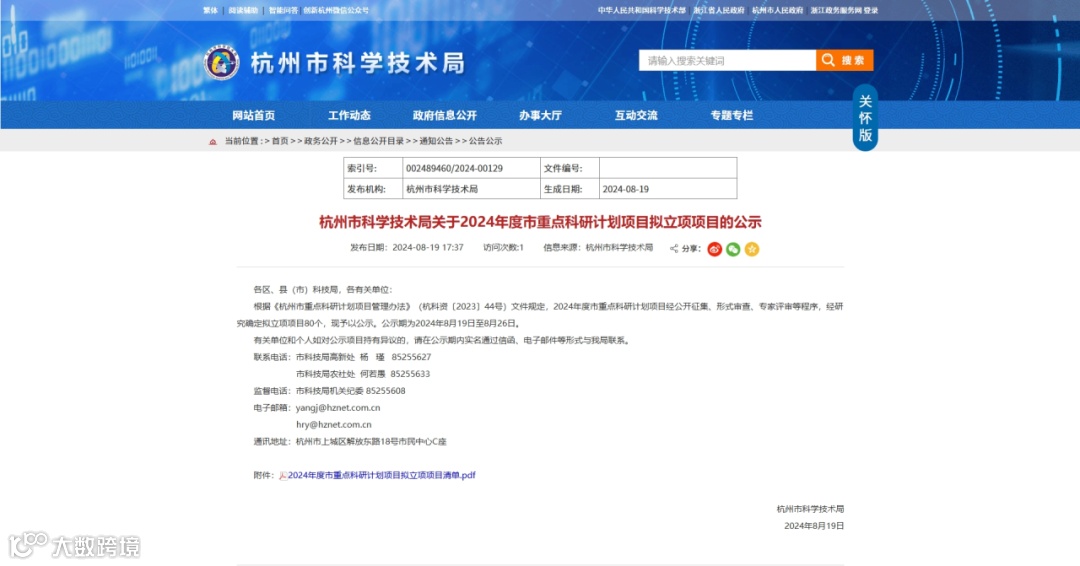 杭州市重点科研计划是杭州市围绕建设科技创新策源地、科技成果转移转化首选地,打造创新创业新天堂目标,集聚力量开展的重点技术领域应用基础研究、社会公益性研究、关键核心技术攻关、科技成果转化应用和科技合作研究活动的计划。经公开征集、形式审查、专家评审等程序,经研究确定拟立项项目80个。