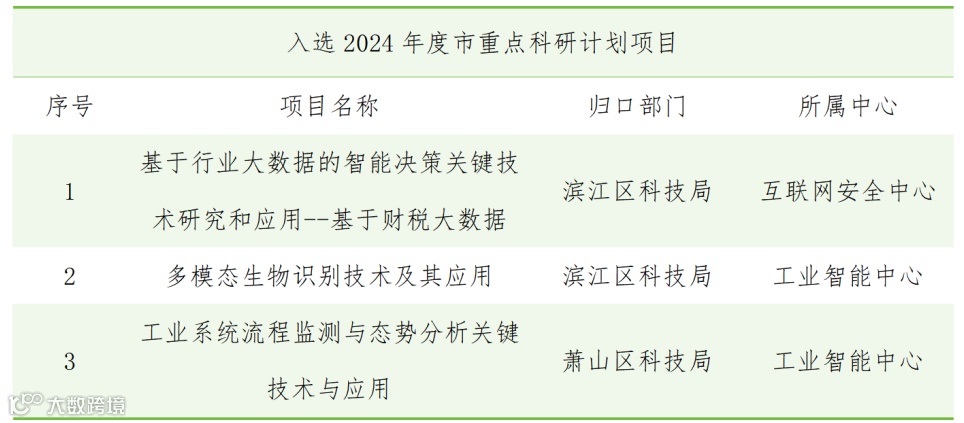 近日,杭州市科学技术局公布“2024年度市重点科研计划项目拟立项项目”,我院参与的“基于行业大数据的智能决策关键技术研究和应用--基于财税大数据”、“工业系统流程监测与态势分析关键技术与应用”、“多模态生物识别技术及其应用”等三个项目获批立项。