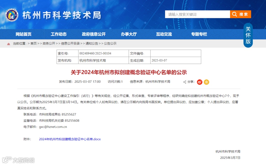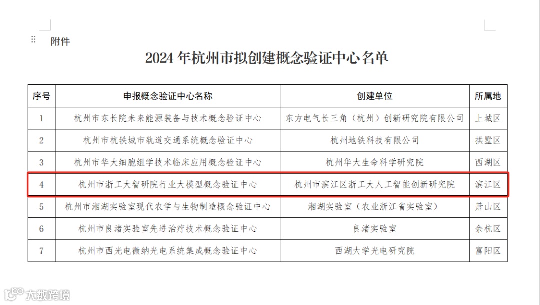 3月7日,杭州市科学技术局发布了《关于2024年杭州市拟创建概念验证中心名单的公示》,我院通过组织申报、评审、现场考察、公示等过程环节,成功获批创建“杭州市浙工大智研院行业大模型概念验证中心”。