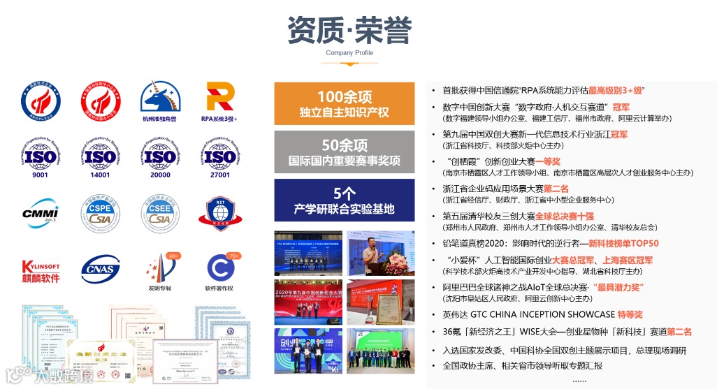 ▲ 2020「新经济之王」最具成长性创业公司、最具影响力企业(企业服务-RPA)、最具行业创新实力的技术服务商