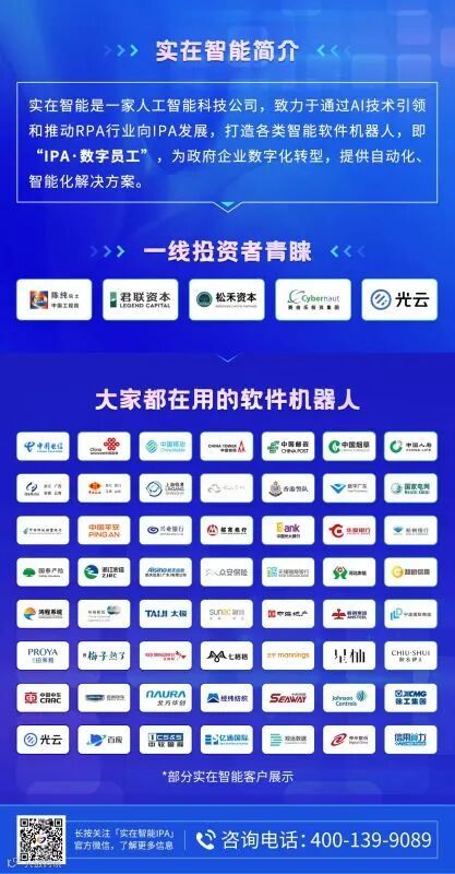 实在智能通过和国际前沿的AI技术接轨,将先进的AI技术应用到RPA作为持续发展方向。实在智能在传统“三件套“架构的基础上,独创了自研AI能力平台“智能云脑”Z-Brain。智能云脑集成了包括Chatbot、数据平台、算法平台等多种AI能力。其中,在自然语言处理领域,Z-Brain覆盖了包括BERT、ALBERT、RoBERTa等最新算法;在计算机视觉领域,Z-Brain覆盖了DB、PMTD、RARE等最新算法。具备自学习、高效迭代、自动调参、多场景融合技术,可以输出AI组件,完成大规模复杂场景的智能决策。提供从认知到决策,创造企业智能生产力。