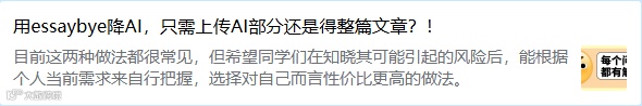 Essaybye为新老用户提供海外本科、研究生、博士升学指导及申请服务,包括人工论文降AI、降重、润色、日常课业辅导等~欢迎大家交流咨询!