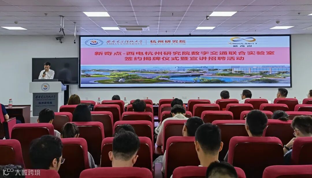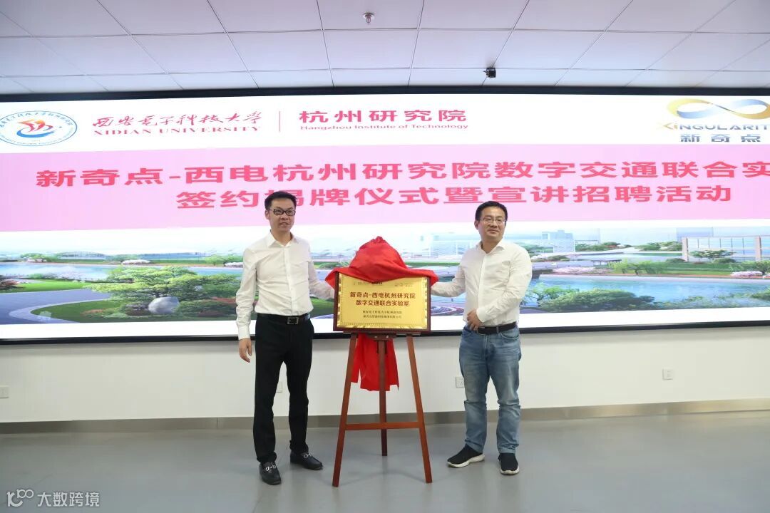 5月26日下午,新奇点-西电杭州研究院数字交通联合实验室签约揭牌仪式暨宣讲招聘活动在西电杭州研究院举行。
