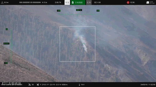在飞行任务中,XC-25无人机搭载双光吊舱对火点进行锁定侦察与追踪,发现明显烟点一处,系统及时将烟点坐标及情况反馈至指挥部相关人员,与地面部队和救火直升机紧密配合,联动扑灭余火。