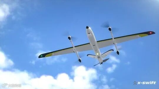 时速每小时72公里,任务半径为40km,最大起飞高度为4500米——虽然这款漂亮的纯电动垂直起降固定翼无人机X-Swift,只是10公斤级的,但它2.5小时的飞行时间已属全球业界翘楚。