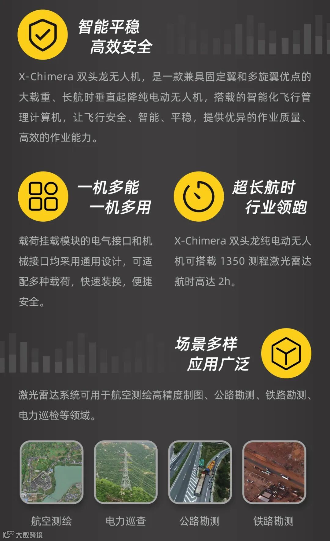 纯电动安全稳定,垂直起降不受起飞场地限制,固定翼航时持久……这……说的就是傲势X-Chimera双头龙无人机!