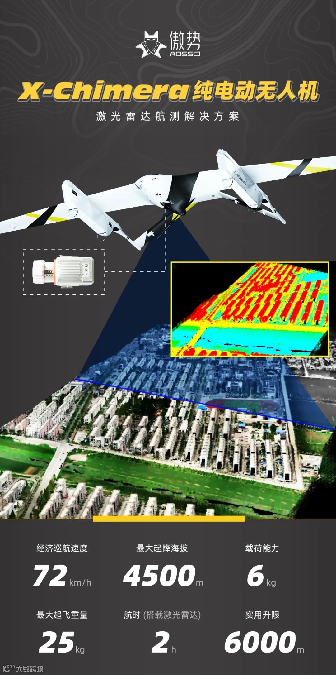 集两家之所长,创各家之特色。傲势与华测深度改进飞机结构,合作研发出一款纯电固定翼激光雷达系统,根据用户的实际需求匹配解决方案。