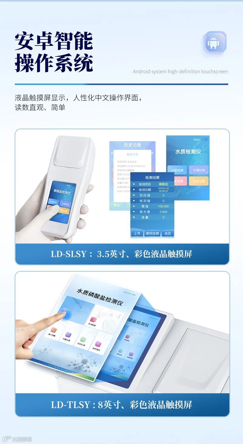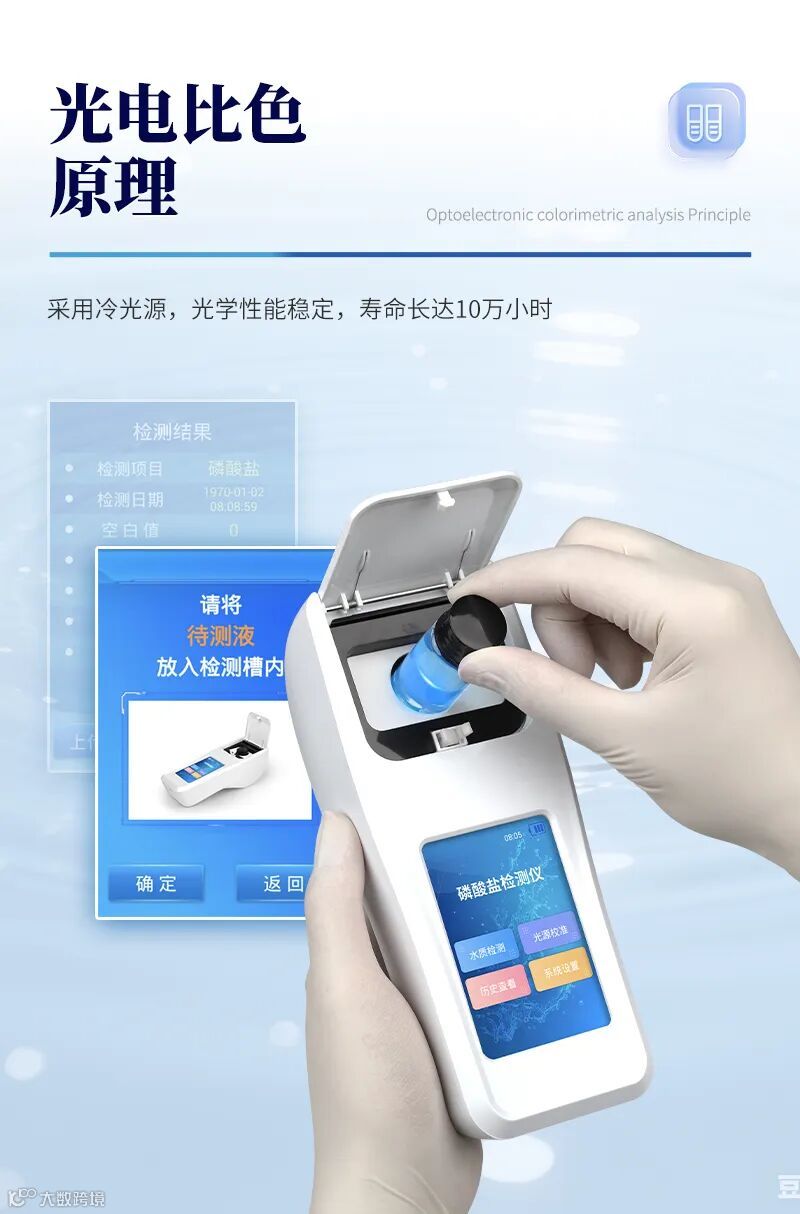 莱恩德磷酸盐检测仪以精准、快速、便捷为核心优势,通过光电比色与智能算法融合技术,实现水体磷酸盐浓度的“一键定量检测”,其技术特点与应用价值可归纳如下: