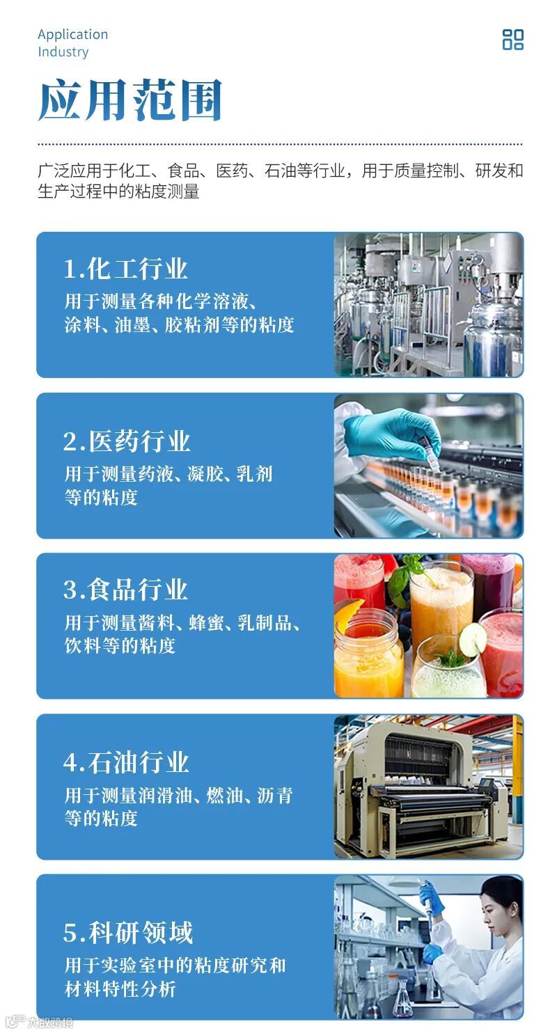 科研领域:用于实验室中的粘度研究和材料特性分析。