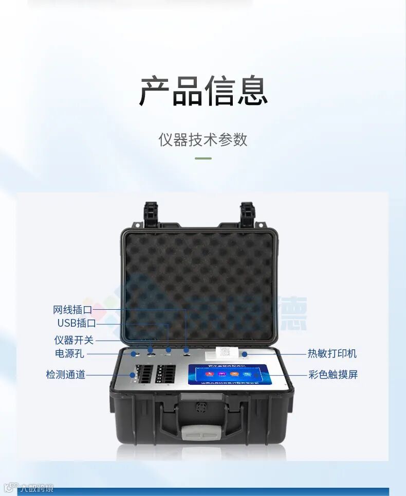 便携性:仪器质量轻、体积小,配置全套前处理设备和手提箱,适用于食堂、农贸市场、监管现场等多场景。例如,监管人员可携带设备对校园周边食品摊贩进行突击检查。