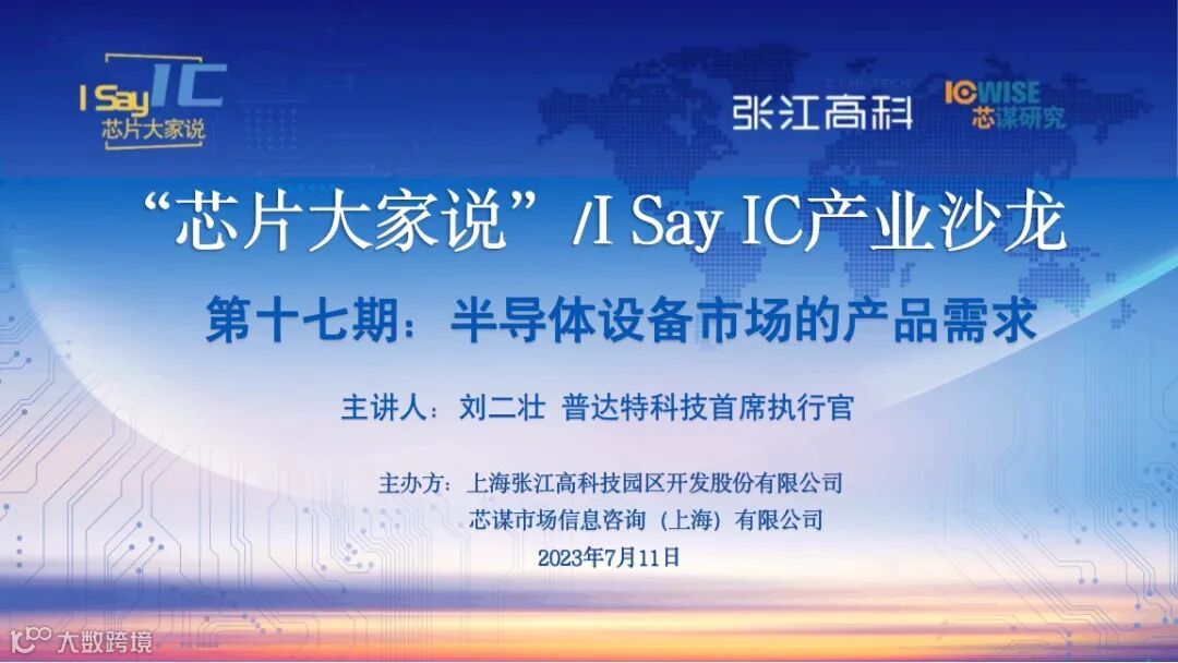 2023年7月11日(周二)晚六点,由张江高科与芯谋研究共同主办的“芯片大家说”产业沙龙第十七期线下活动将在张江大厦与大家再次见面。本期活动成功邀请到普达特科技有限公司首席执行官刘二壮,刘博士将对“半导体设备市场的产品需求”这一话题进行精彩分享。