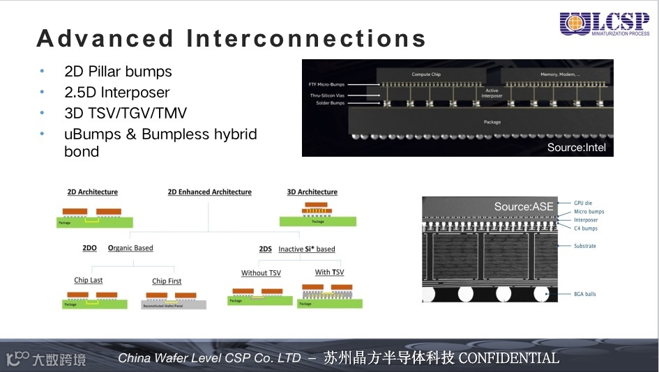 SiP系统级封装系统间各模块通过互连技术实现通信。先进互连技术包括凸块(Bumping)、2.5D的插入器(Interposer)、3D的TSV/TGV/TMV、无凸块混合键合,晶圆级堆叠等工艺和方法。