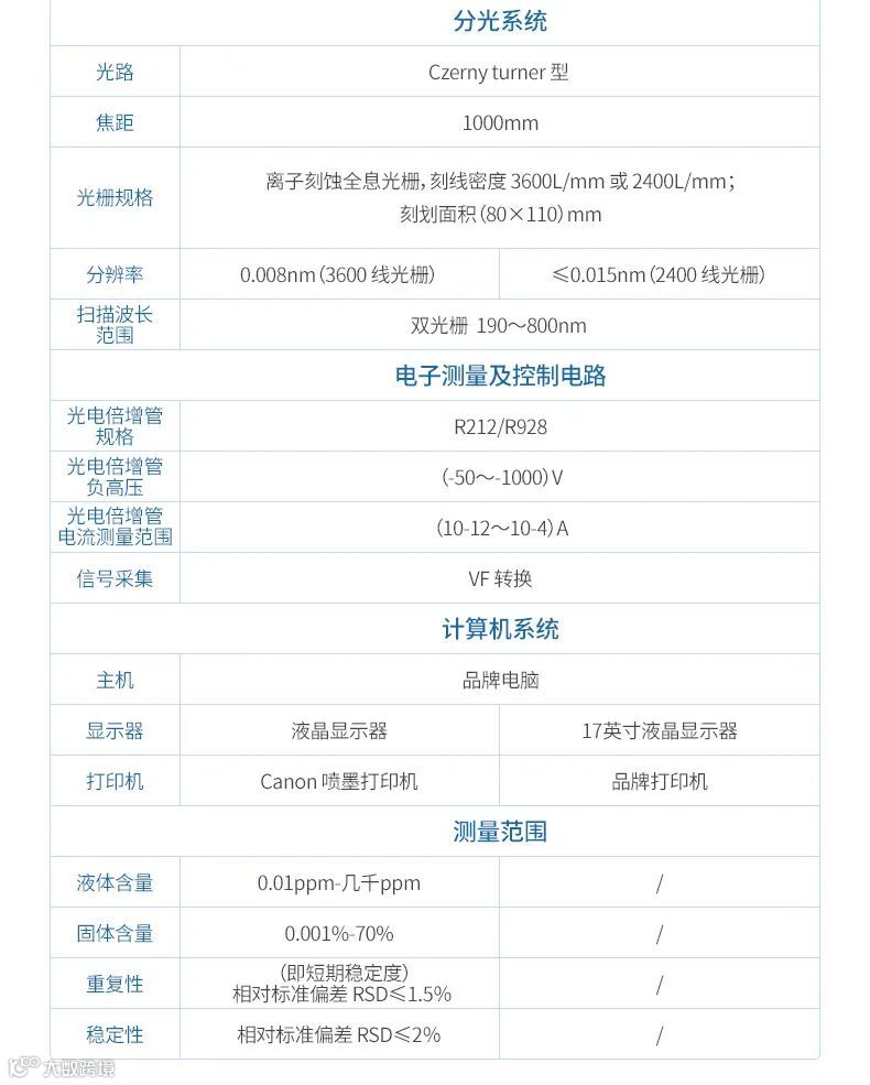 扫描波长范围:3600线光栅:(190~500) nm