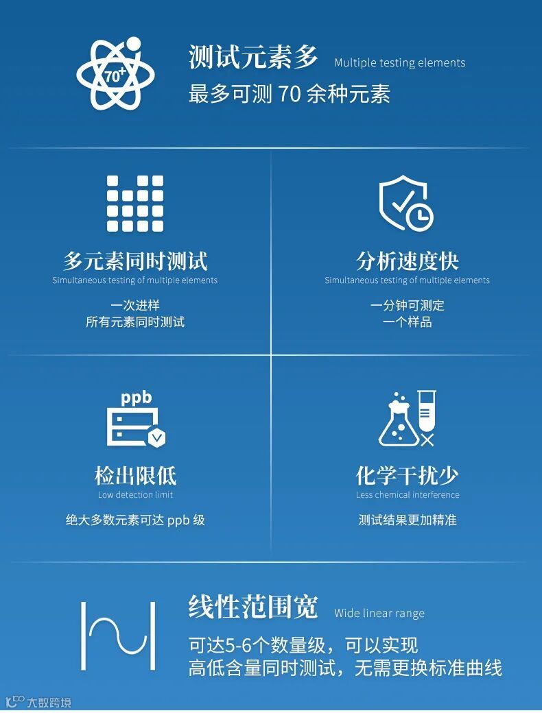 4、检出限低,绝大多数元素可达 ppb 级。