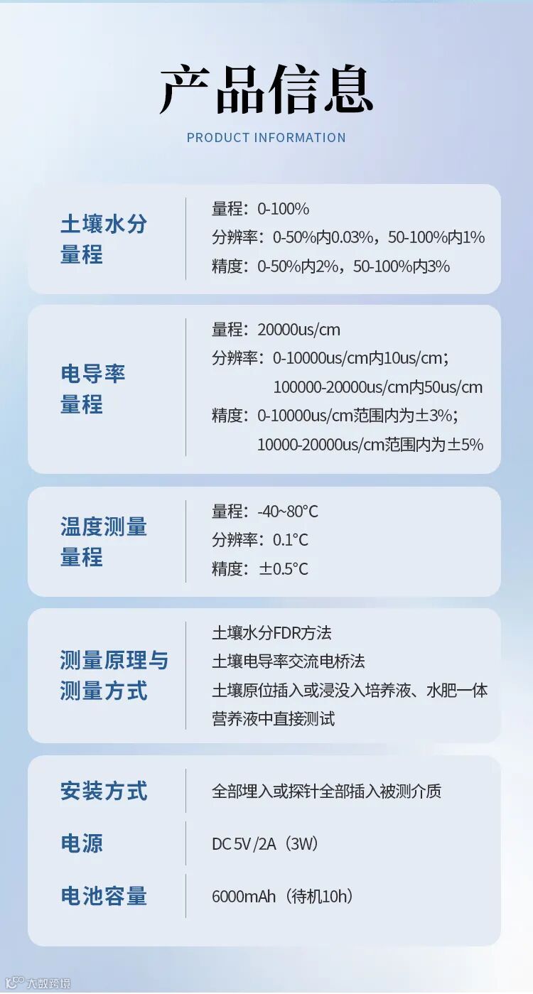 测量精度:0-50%(m3/m3)范围内)±2%(m3/m3);
