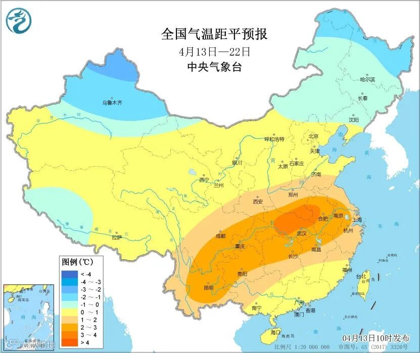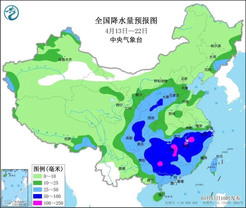 未来10天(4月13-22日),西北地区东部、江汉南部、江南、华南以及四川东部、重庆、贵州中东部、西藏东南部等地累计降水量有25~50毫米,其中江南、华南北部、贵州东部、四川东部等地的部分地区可达70~130毫米,上述部分地区降水量较常年同期偏多3~6成,局地偏多1倍左右;新疆北部和西部、青海东部、甘肃西部、华北南部、东北东南部、黄淮等地累计降水量有5~20毫米,局地超过30毫米。主要降水时段在13-14日、17-19日及21日前后。