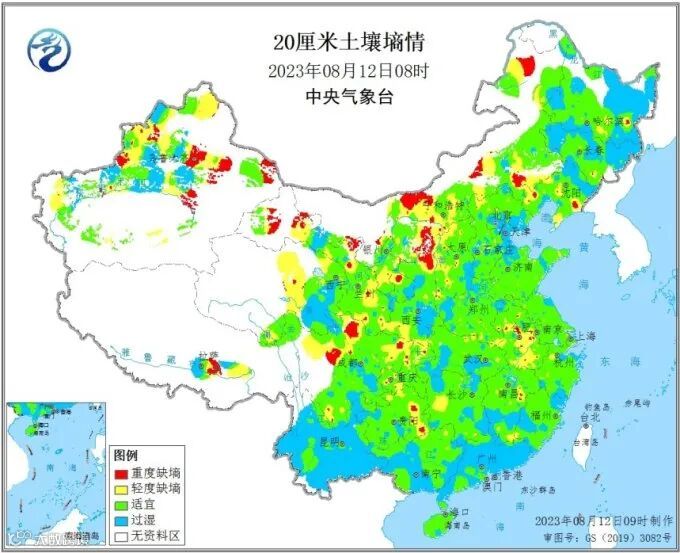 本周,黑龙江和吉林气温接近常年或偏低1~2℃、日照较常年偏少3~9成、雨日数有3~6天,其中黑龙江西部和东南部以及吉林东部降水量有25~100毫米、局地超过100毫米,低温多雨寡照天气不利于前期土壤过湿地区排涝散墒,部分农田出现渍涝灾害,导致作物根系呼吸短暂受阻,作物生长发育缓慢;辽宁大部、内蒙古东部土壤墒情适宜或略湿,气象条件基本利于大豆、玉米生长发育。新疆东部有3~6天日最高气温≥35℃的高温天气,对棉花花铃生长、春玉米灌浆及林果生长不利。西北地区东部和南部出现大到暴雨,降水量较常年偏多3成至4倍,甘肃陇南、陕西关中等地土壤缺墒状况得到明显缓解,大部气温偏高1~4℃,对秋粮作物生长发育总体有利。华北、黄淮大部光温充足,利于前期土壤过湿地区散墒,截止12日,大部土壤墒情适宜,气象条件利于夏玉米抽雄吐丝、棉花开花以及大豆开花。长江中下游地区周内光热充足,大部蓄水较好或旱田墒情充足,利于在地作物生长发育;江淮西部和南部、江汉中东部等地周内无明显降水,湖北东部、湖南大部、江西东北部、浙江西南部等地高温日数有5~7天,安徽、湖南等地出现轻度缺墒,高温少雨不利于一季稻拔节孕穗和抽穗灌浆、夏玉米抽雄吐丝、夏大豆开花结荚、棉花开花吐絮以及晚稻分蘖生长。西南地区大部光温水匹配较好,利于春玉米灌浆乳熟、一季稻抽穗灌浆和乳熟以及经济林果果实膨大;云南西南部出现多雨寡照,不利于一季稻抽穗扬花、夏玉米开花吐丝和成熟烤烟采收。华南东南部和西部周内多暴雨和大暴雨,强降水缓解高温和广西等地蔗区旱情,补充农业生产用水,但部分农田出现短时渍涝,对作物生长略有不利。