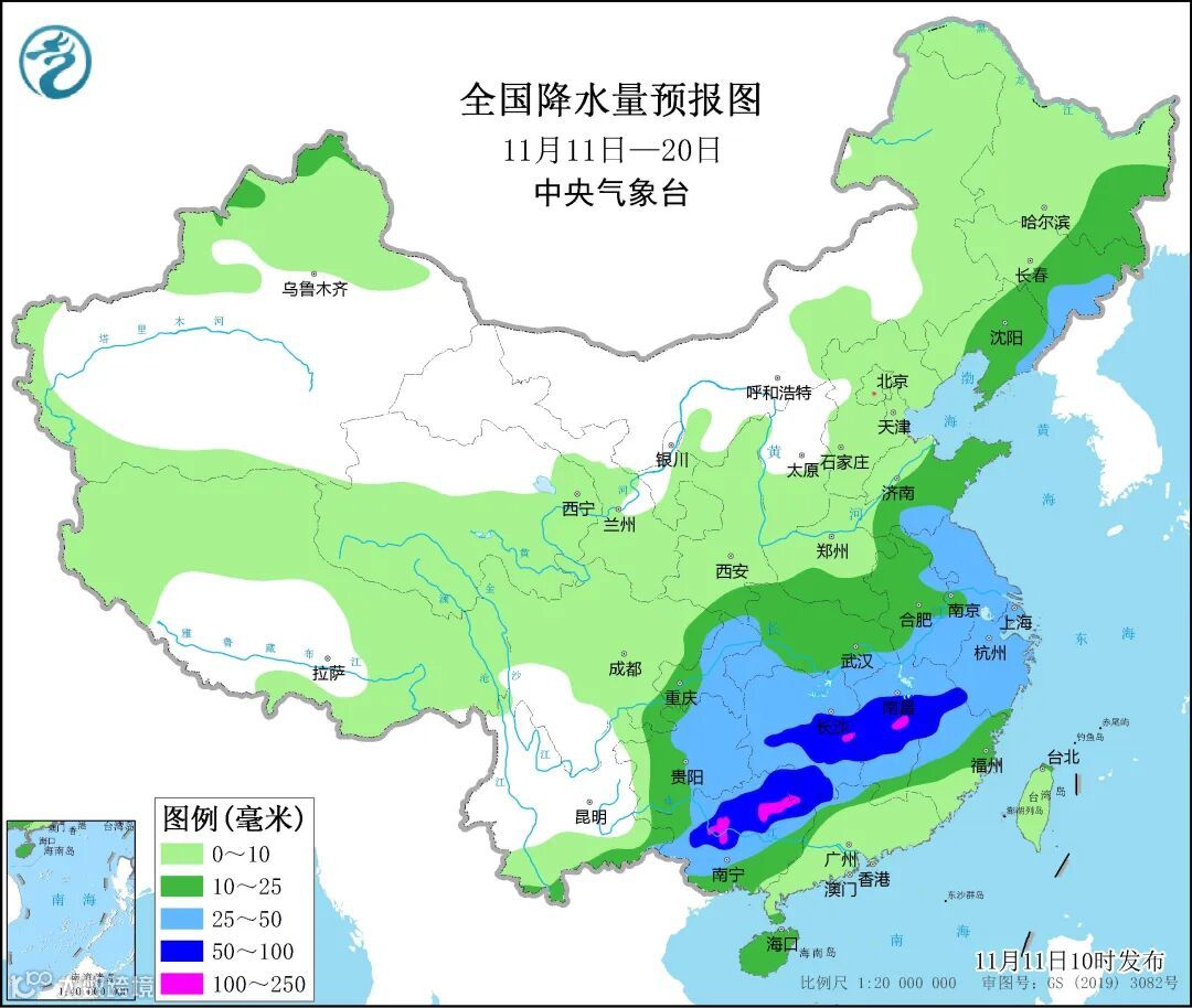 未来10天(11月11-20日),江南大部、华南西部及贵州等地累计降水量有20~40毫米,其中江南中南部及广西北部等地部分地区有50~70、局部100毫米以上;上述地区降水量较常年同期偏多3~7成,局地偏多1倍以上;其余地区降水接近常年或偏少。