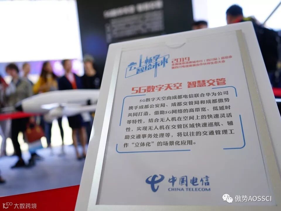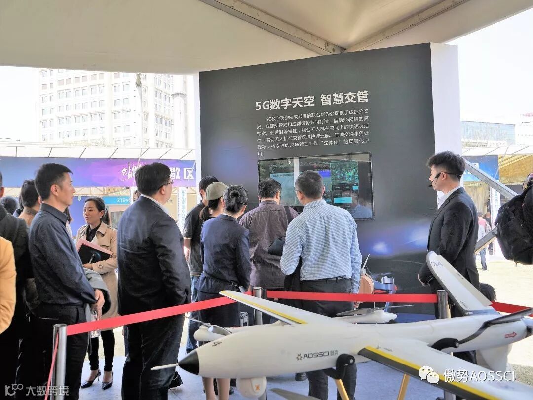 ↓ 2019年3月28日,在四川电信首届合作伙伴生态大会上,X系列无人机系统向观众展示了端到端5G数字天空应用。