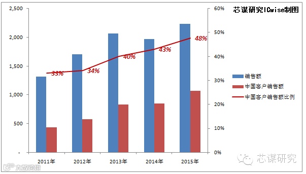 为中国客户服务:中国区销售额高达48%。