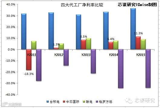 全球四大代工厂2011-2015年净利率对比图