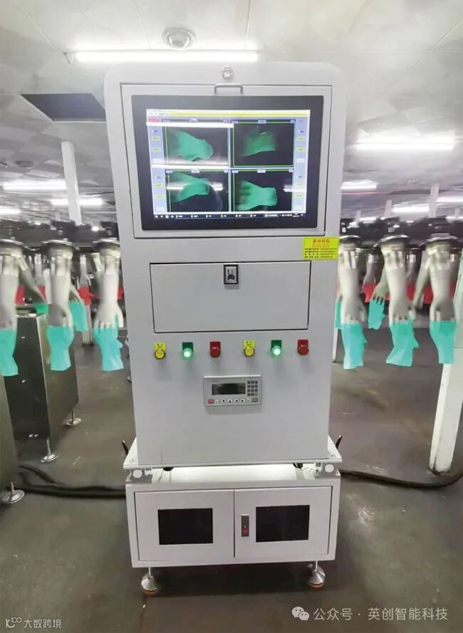 第三代手套视觉检测设备与图片采集分析系统及控制系统全部集成到同一设备,单独控制柜可根据现场空间灵活取舍,具有占地空间小,故障少,易维护,安装灵活快速不用停线等显著优点。检测及控制系统也可以分离安装,适合集中控制的产线。第三代视觉检测设备在完全继承二代设备优点的基础上进一步降低误检率,提高了油污破损检测能力,对于常见瑕疵类型做到了全覆盖,手套颜色可随时添加且用时较短,持续加强了对于大撕裂缺陷手套的冗余检测能力,尤其是丁腈手套能做到平均2-3万只手套无大撕裂油污等缺陷漏过(此数据可人工全检验证,不含因点数机撕扯造成的横向大撕裂)。