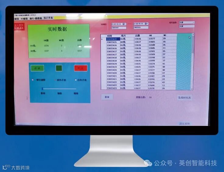 检测系统具有每小时产量总数统计、OK总数及NG总数实时数据显示功能,以及历史数据查询及导出EXCEL综合报表功能。适合瑕疵手套溯源查找原因,支持设备特定时间段是否开机查询。