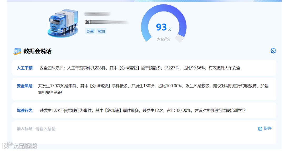 怎么管车更安全?驾驶状态的有效预警和管控是降低事故的核心因素。超联车队通过实时监测和分析车辆、司机驾驶行为以及行驶状况等多维度数据,及时发现和预知异常情况并判断风险等级,为司机提供7*24小时的安全提醒服务,降低车辆事故率,降低油耗成本!