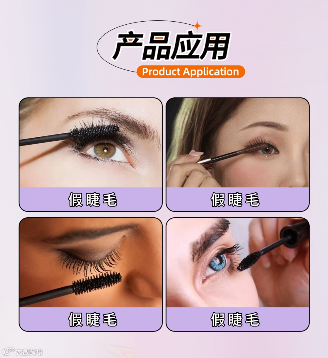 接着刷上睫毛膏,等睫毛膏等睫毛膏彻底干透后,从睫毛根部以 “Z” 字型向上涂刷睫毛雨衣,下睫毛用刷头直立着简短涂刷。