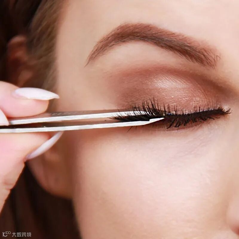 使用镊子轻轻夹起假睫毛,避免触碰胶水层。