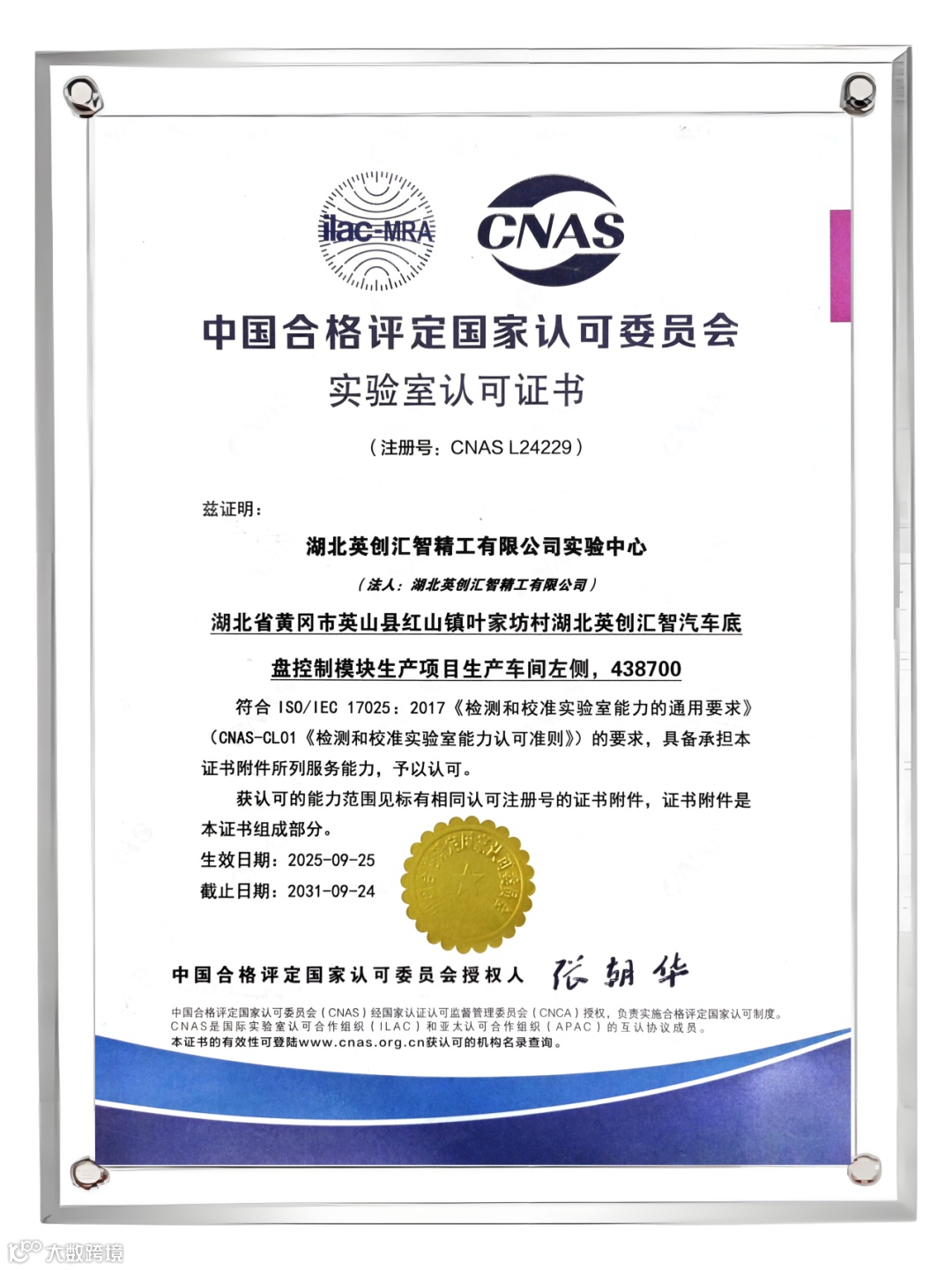 近日,英创汇智实验中心顺利通过中国合格评定国家认可委员会(CNAS)的严格评审,正式获得CNAS实验室认可证书(注册号:CNAS L24229)。这标志着公司已建立起符合国际标准的实验室质量管理体系,在产品试验与检测技术能力方面达到国际认可准则要求,所出具的检测报告具有国际互认性。