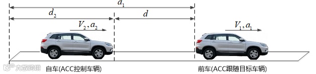 自适应巡航系统(Adaptive Cruise Control,ACC)是根据主车与前方车辆间的相对距离、速度等信息,通过自动调节油门开度和制动压力对主车速度进行速度和距离控制,使得主车与前方车辆保持安全的车间距。