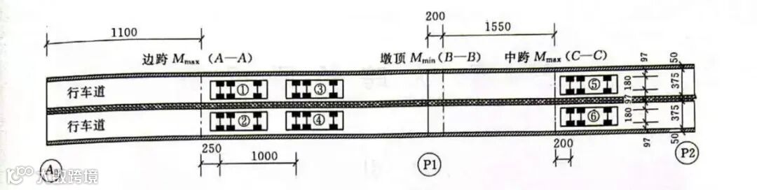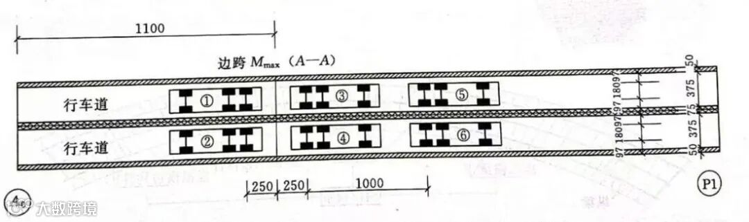 图1-6 边跨M+max(A-A截面)加载车载位布置(单位:cm)