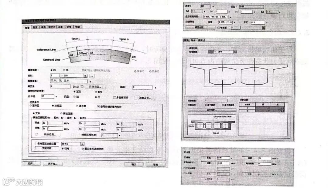 鉴于此,运用midas Civil软件自带的“梁格法建模助手”(图1-2)来对单箱多室曲线箱梁桥结构进行有限元建模,见图1-3。