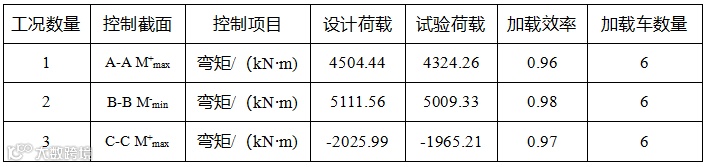 按照上述加载车布置后,各控制截面的荷载试验加载效率见表1-1